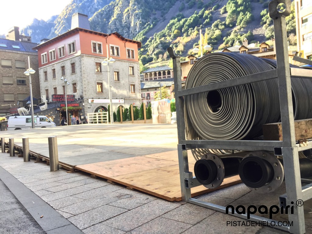 Además de estas imágenes del montaje, puedes ver aquí cómo construimos una pista de hielo de Andorra la Vella en el vídeo de la instalación de la pista de hielo de Andorra la Vella, algo que hacemos en muchas de nuestras instalaciones, en función del espacio y del terreno. Descubre cómo se instala una pista de hielo natural en pocas horas.
